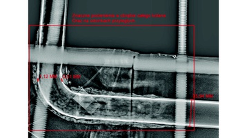 Połączenie S355 (12mm) + stal nierdzewna (65mm) z wypełnieniem drutem pośrednim i badanie ultradźwiękowe w stanie niepełnego przetopu złącza jak na zdjęciu. Brzmi jak wyzwanie…