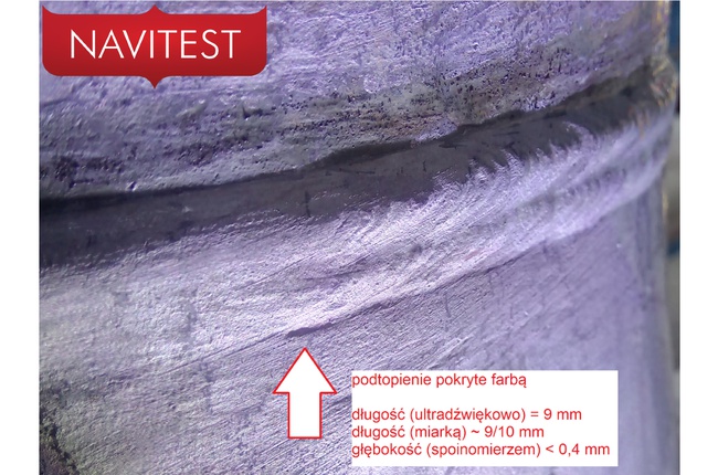 Na zdjęciach badanie ultradźwiękowe Phased Array ukierunkowane na pęknięcia w rejonie złącza. Jak widać jesteśmy w stanie znaleźć i zwymiarować nawet zamalowane podtopienia i odróżnić niezgodności produkcyjne od eksploatacyjnych.