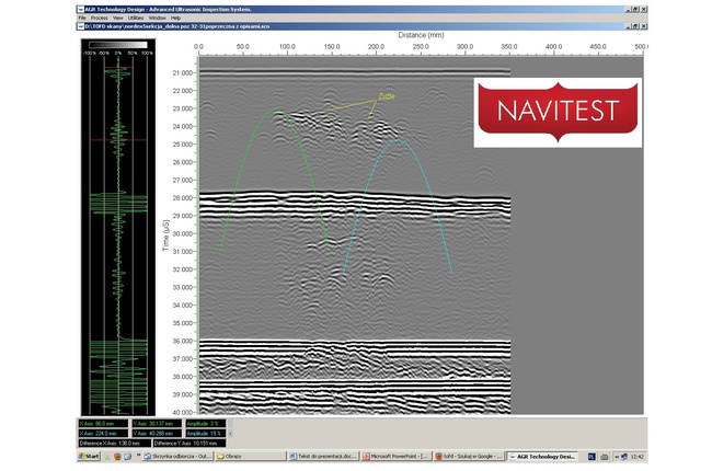 Zakres grubości złączy spawanych 6 -300 mm. Im grubszy materiał tym więcej przemawia za TOFD - szybkość badania złącza o grubości 10 mm i 100 mm na obiekcie, przy odpowiedniej konfiguracji, może być taka sama. Metoda w pełni unormowana w Polsce i na świecie. Powiązanie z rodziną norm ISO5817 – proszę bardzo – jest!
