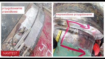 Połączenie S355 (12mm) + stal nierdzewna (65mm) z wypełnieniem drutem pośrednim i badanie ultradźwiękowe w stanie niepełnego przetopu złącza jak na zdjęciu. Brzmi jak wyzwanie…
