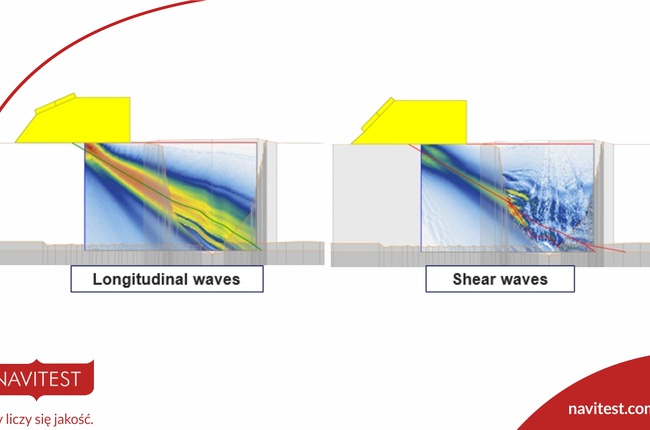 -techniki kombinowane z zastosowaniem głowic na fale podłużne i poprzeczne (ze względu na niepenetrowalność materiału spoiny przez fale drgające poprzecznie),