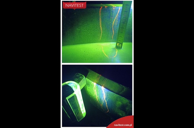 Badania magnetyczno-proszkowe MT zgodne z normą PN-EN 1369 powinny być podstawą badań NDT przy odbiorze jakościowych odlewów staliwnych i żeliwnych. Na załączonym zdjęciu uwieczniliśmy pęknięcie produkcyjne, wykryte podczas badań MT w UV na odlewie.